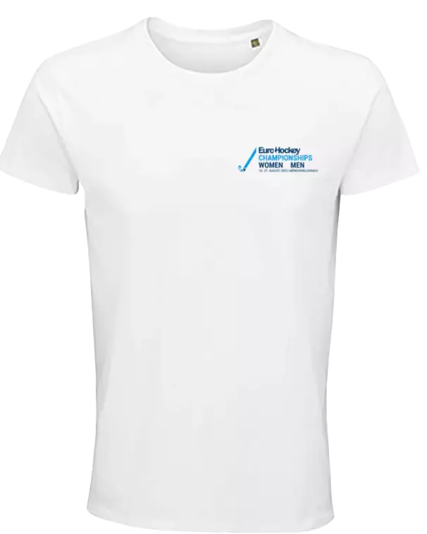 Der Klassiker: Weißes T-Shirt mit dezentem Logo der EuroHockey Championships 2023 auf der linken Brust. Hier jetzt zuschlagen!