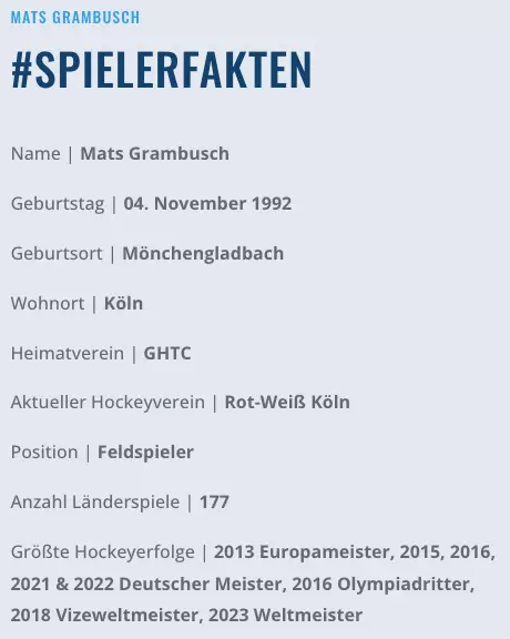 Last but not least: Mats Grambusch – amtierender Weltmeister, Europameister, Olympiadritter und Kapitän der Deutschen Hockey-Nationalmannschaft!