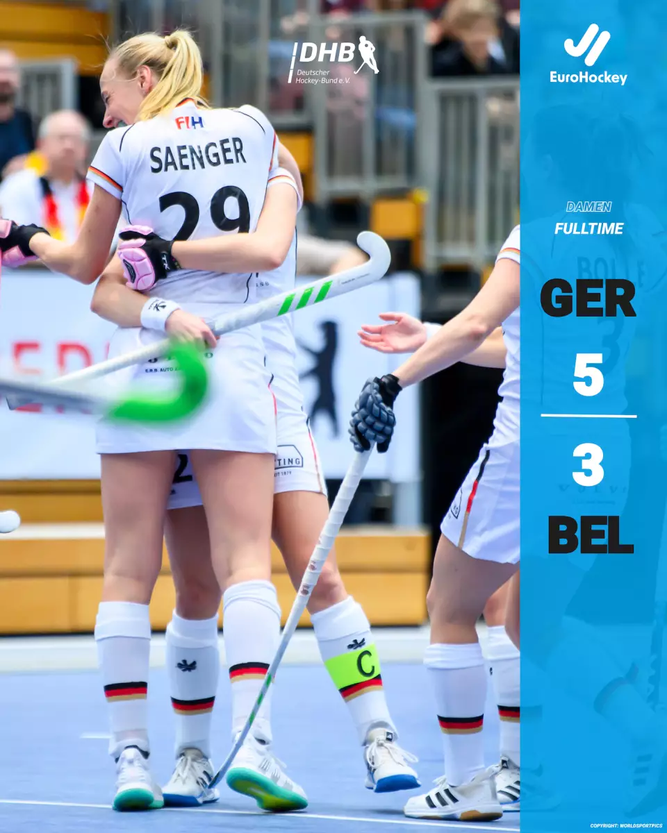 Die deutsche Hockey-Nationalmannschaft der Damen hat ihr letztes Gruppenspiel bei der Heim-Europameisterschaft in Berlin gewonnen. Im insgesamt vierten Spiel besiegte das Team von Bundestrainer Dominic Giskes und Co-Trainer Markus Weise Belgien mit 5:3 (3:2). Für Deutschland trafen Elisa Gräve und Laura Saenger (4x9). Heute Abend (10.02.2024) bestreiten die deutschen Damen um 20.00 Uhr im Horst-Korber-Sportzentrum das EM-Halbfinale gegen Österreich.