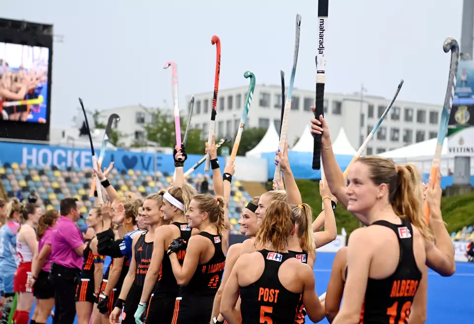 Es dauerte eine Weile, bis die Niederlande das Torfeuer eröffnete. Doch dann ging es richtig los. In den zweiten 30 Minuten, schoss Oranje gleich sieben Tore und zieht hochverdient in das EM-Finale der EuroHockey Championships 2023 in Mönchengladbach ein. England spielt am Samstag im Spiel um Platz drei.