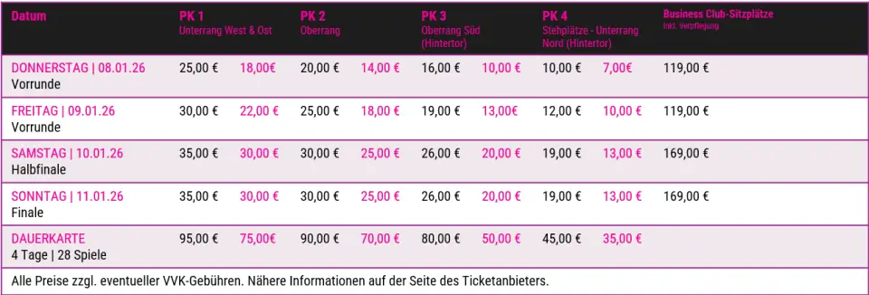 Das günstigste Ticket ist in der Preiskategorie 4 bereits ab 10 € erhältlich (ermäßigt ab 7 €).